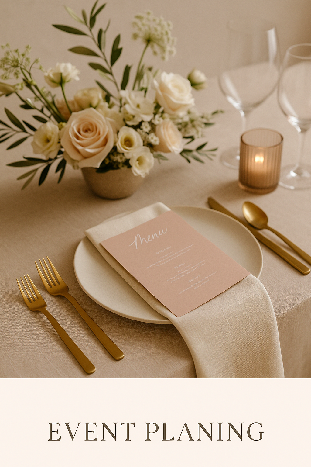 From menu cards to tablescapes — every detail is shaped into a moment.